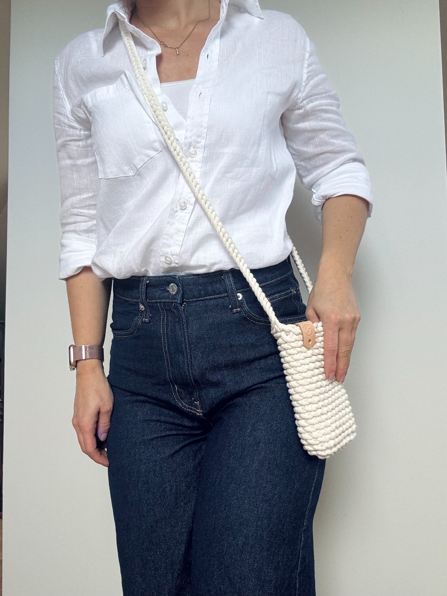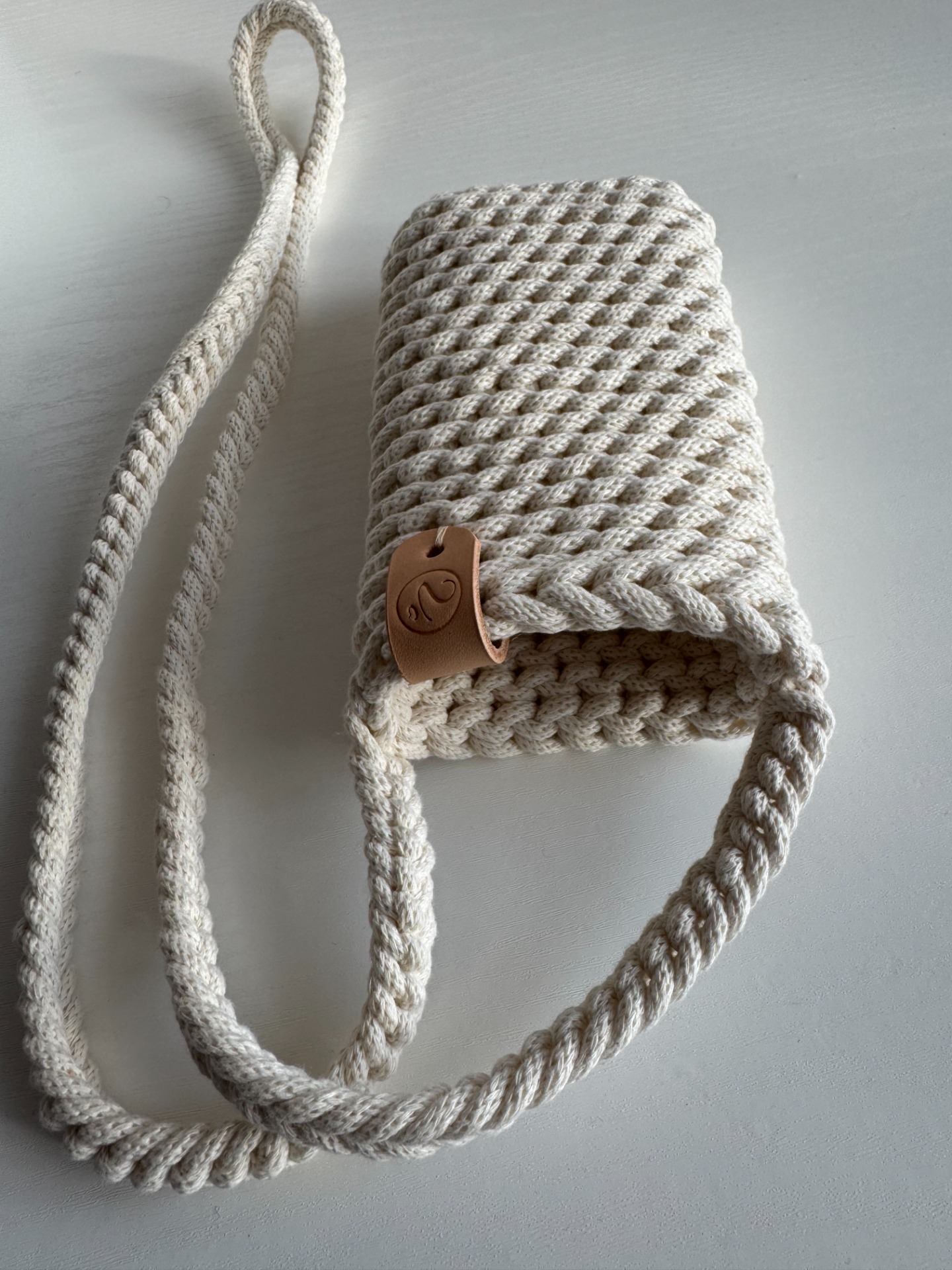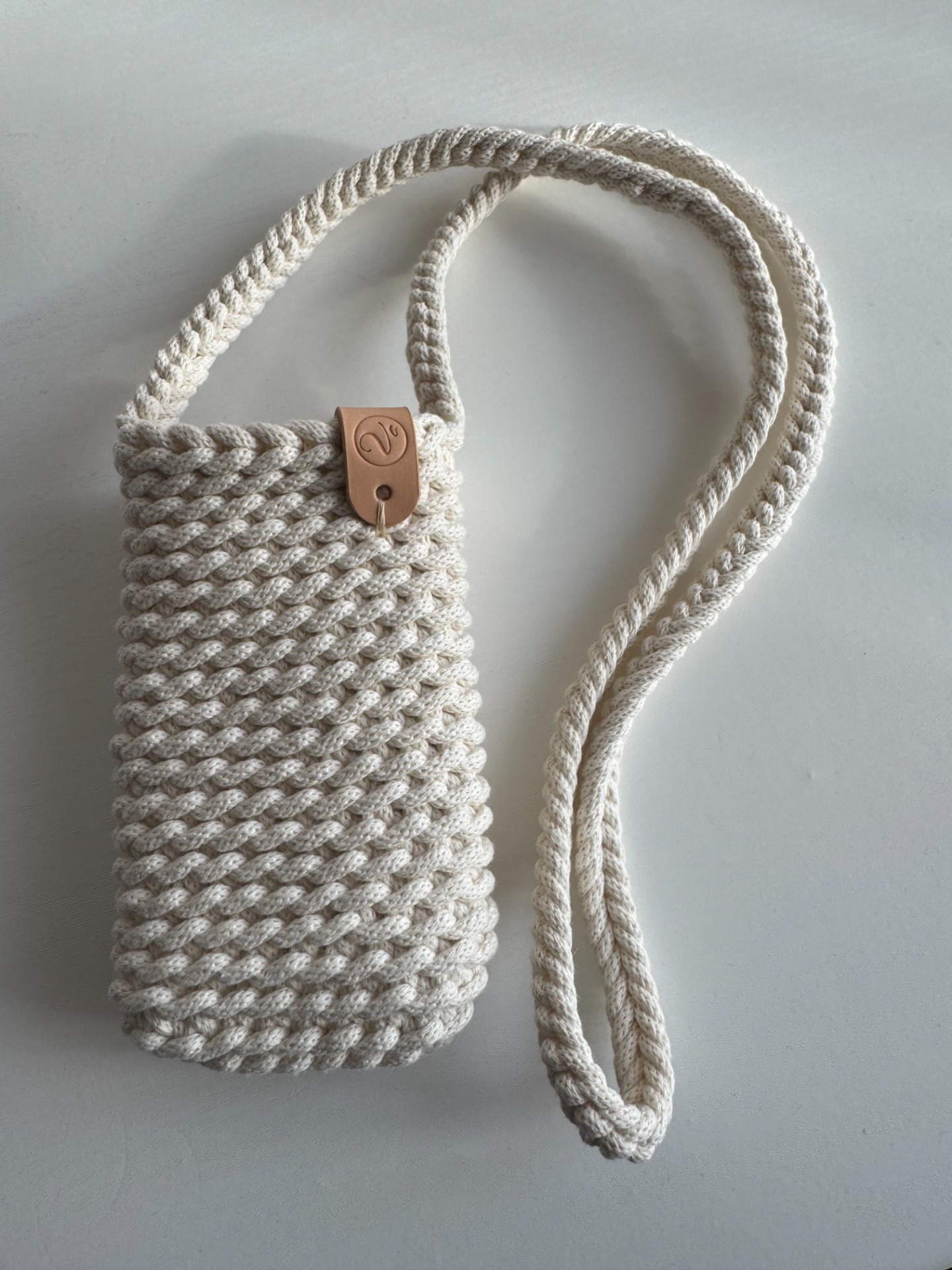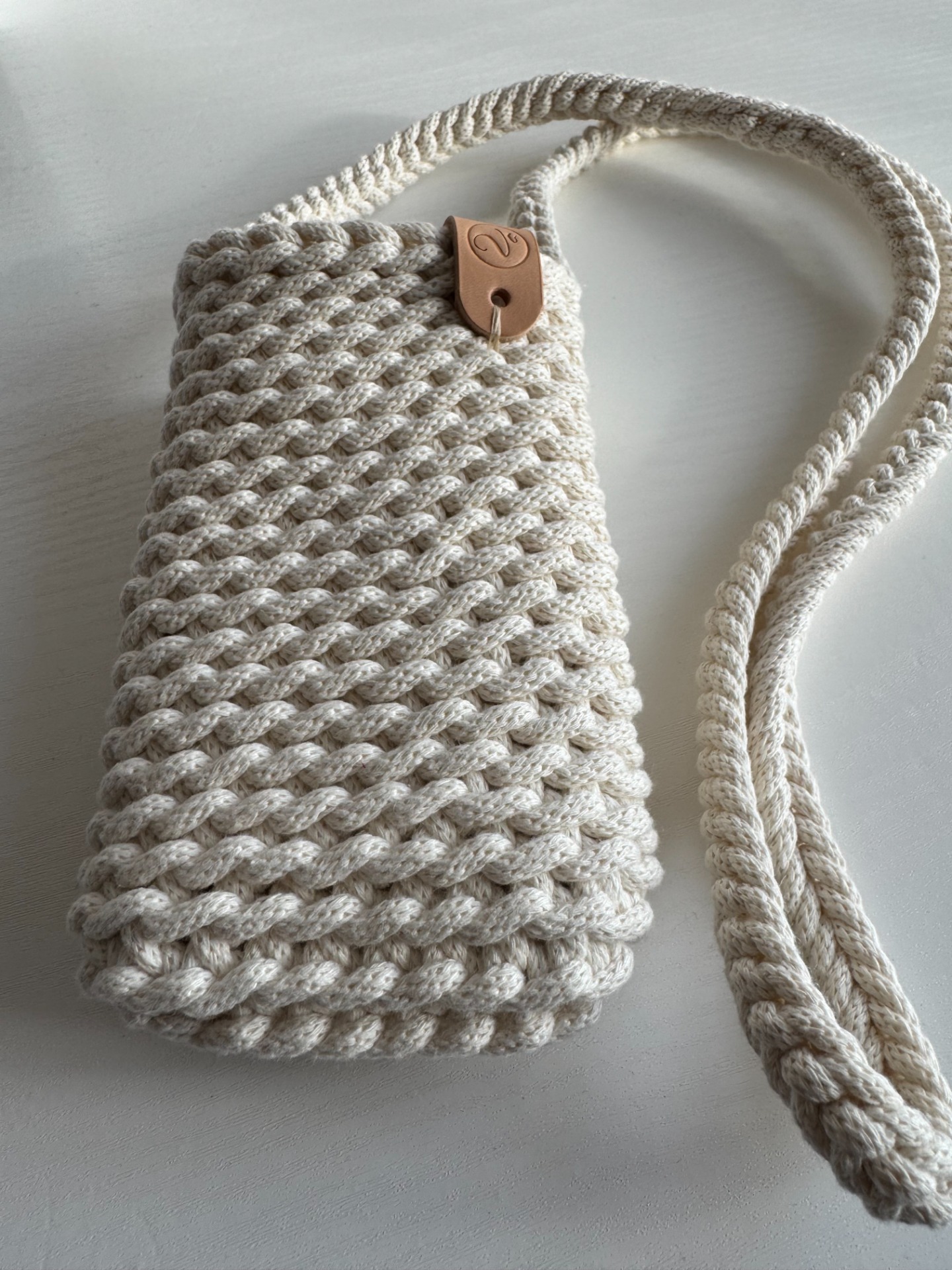 Ručně háčkovaná kabelka na mobil z kvalitní bavlněné šňůry Bobbiny v elegantním krémovém odstínu.