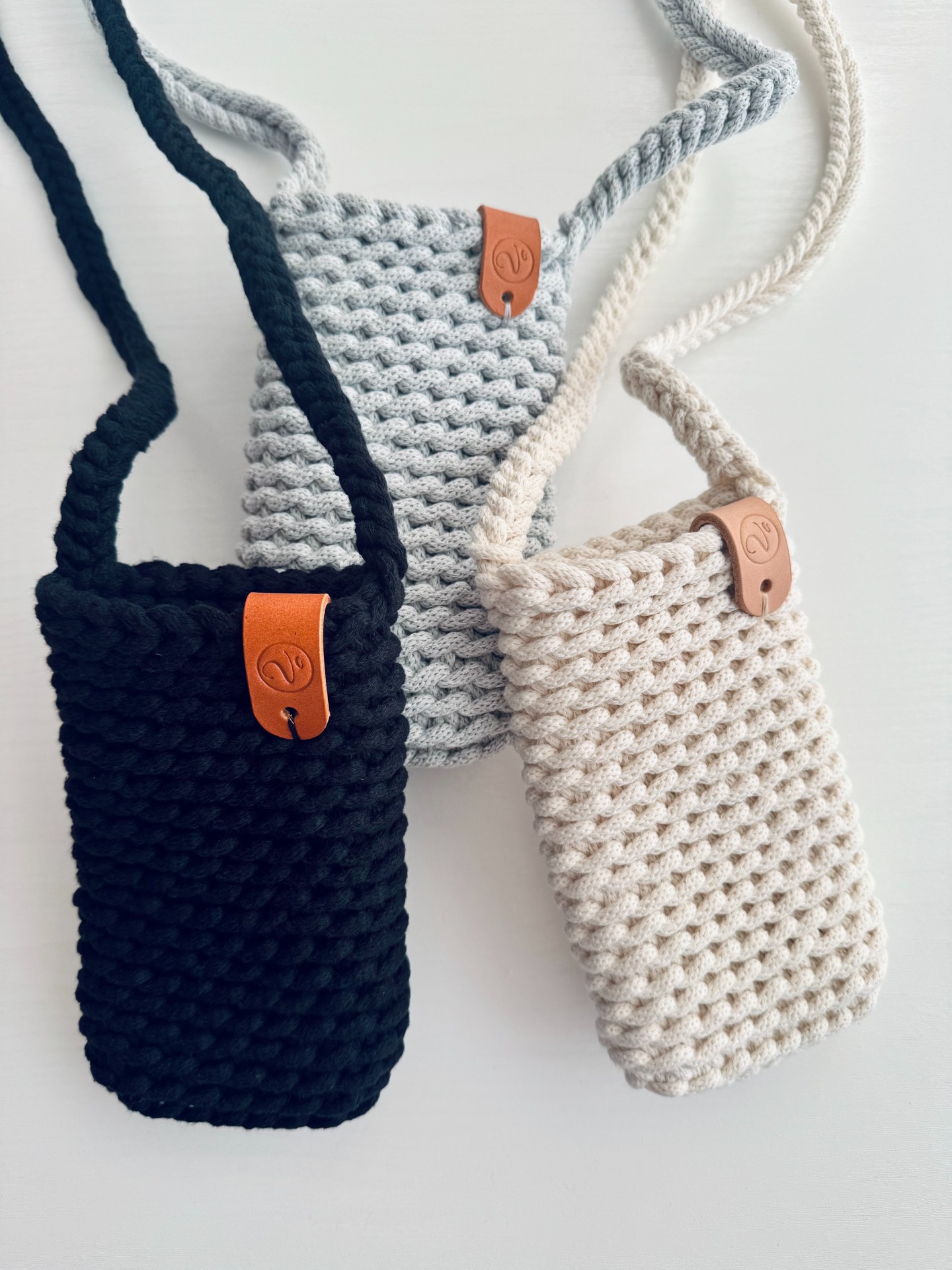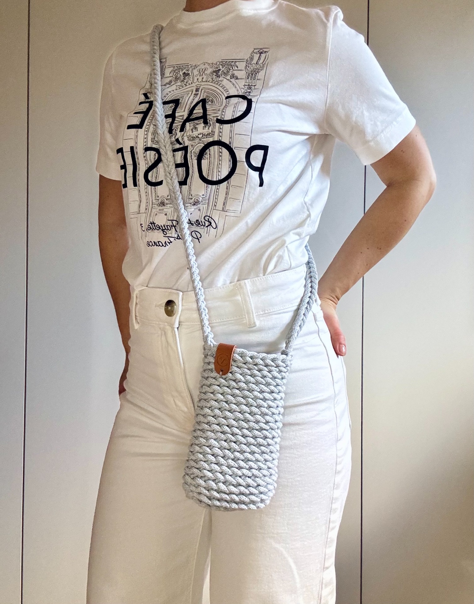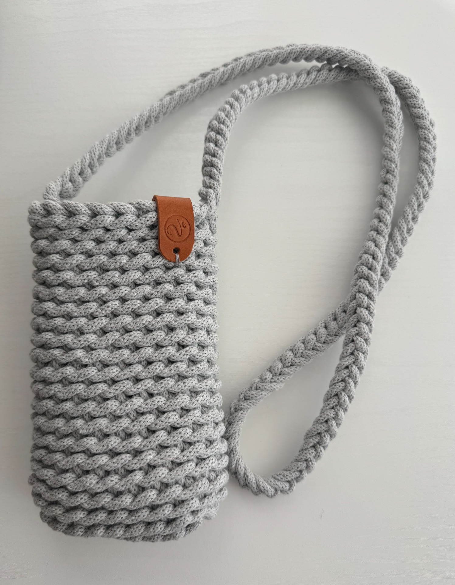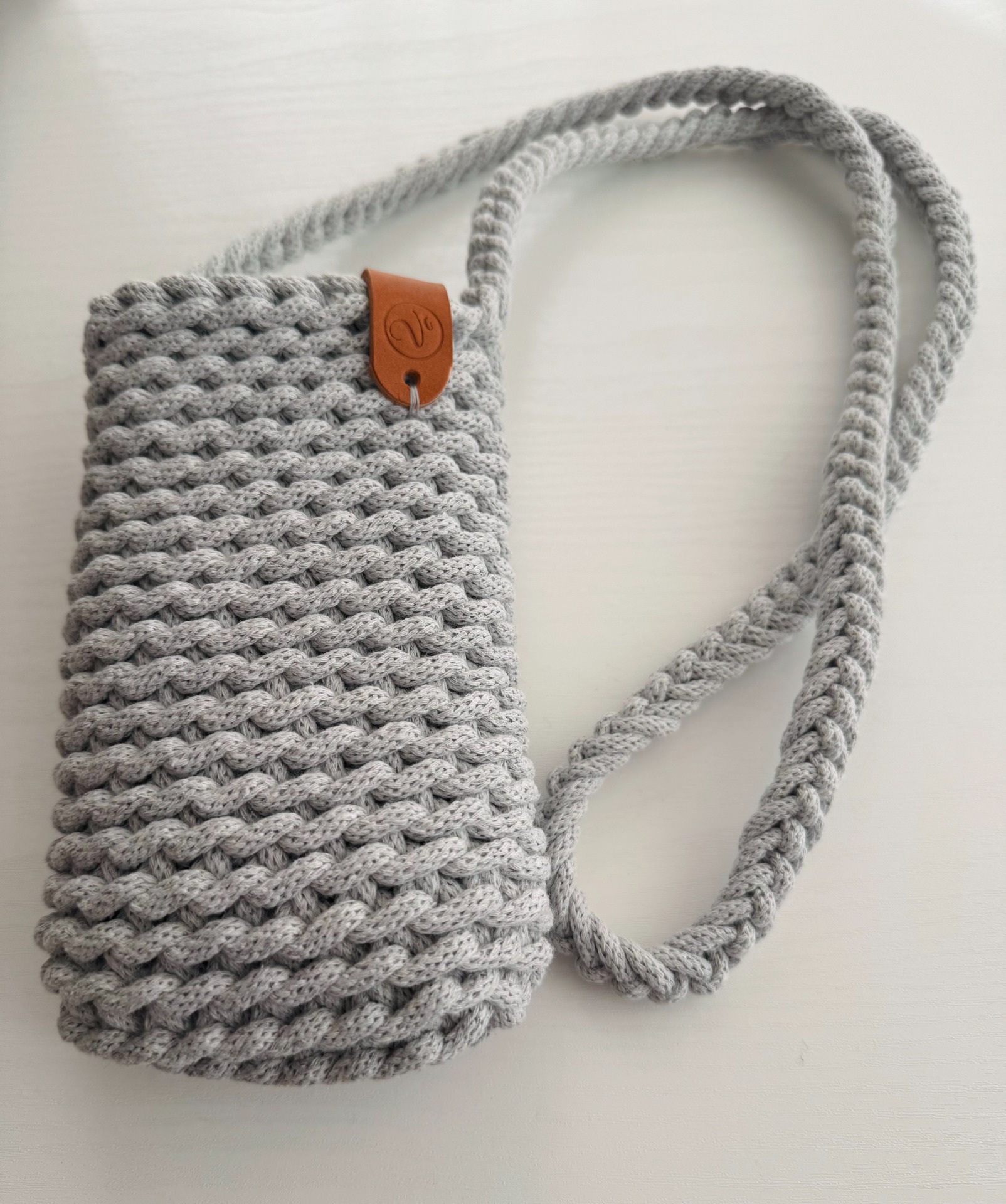 Ručně háčkovaná kabelka na mobil z kvalitní bavlněné šňůry Bobbiny v krásné šedé barvě.