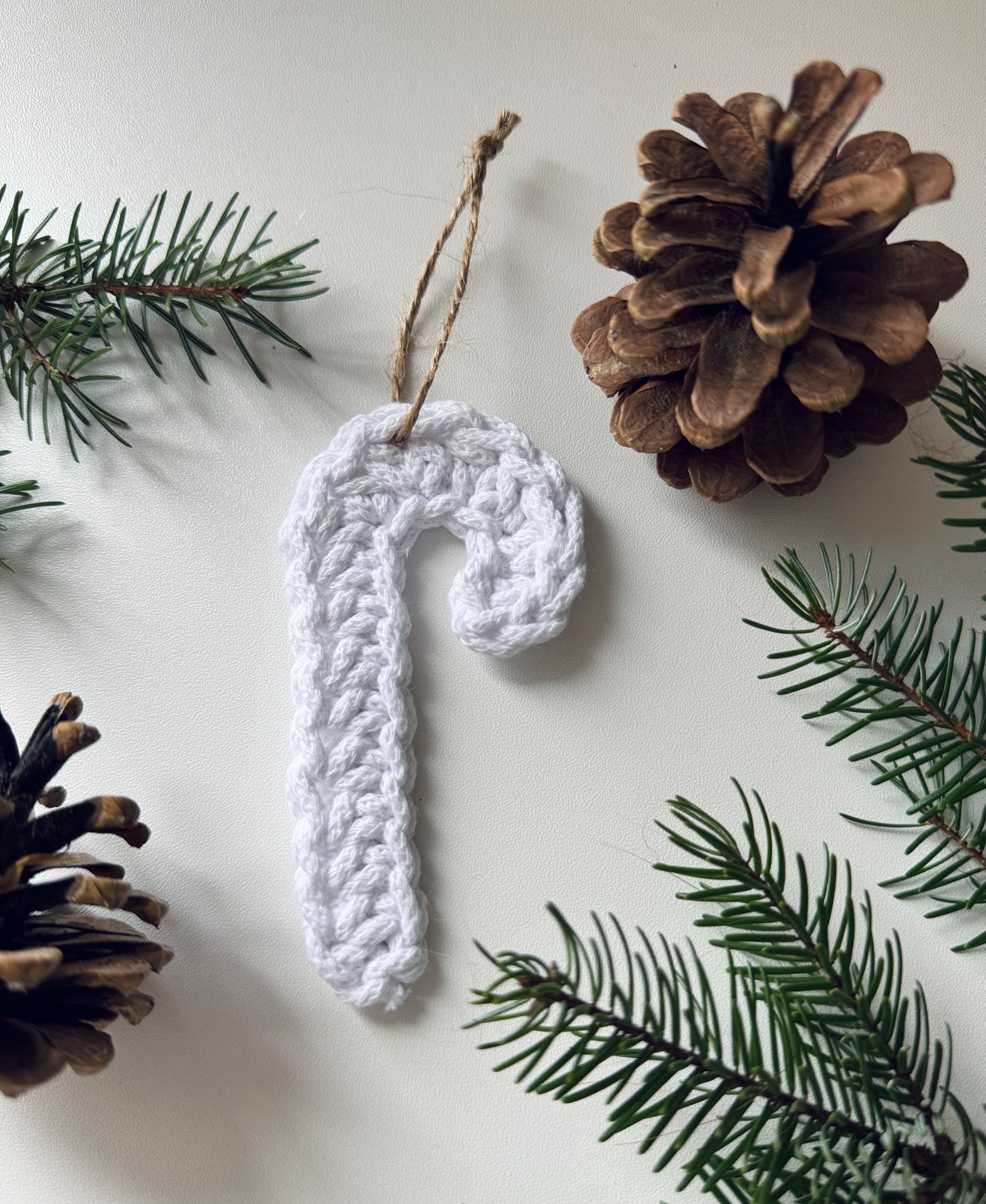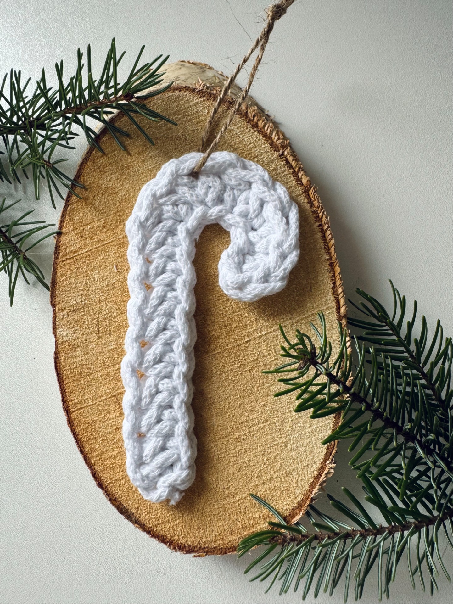 Ručně háčkovaná vánoční hůlka z příze Bobbiny – malý detail, který rozzáří stromeček i zabalený dárek. Každý kus je originál uháčkovaný s láskou k řemeslu.