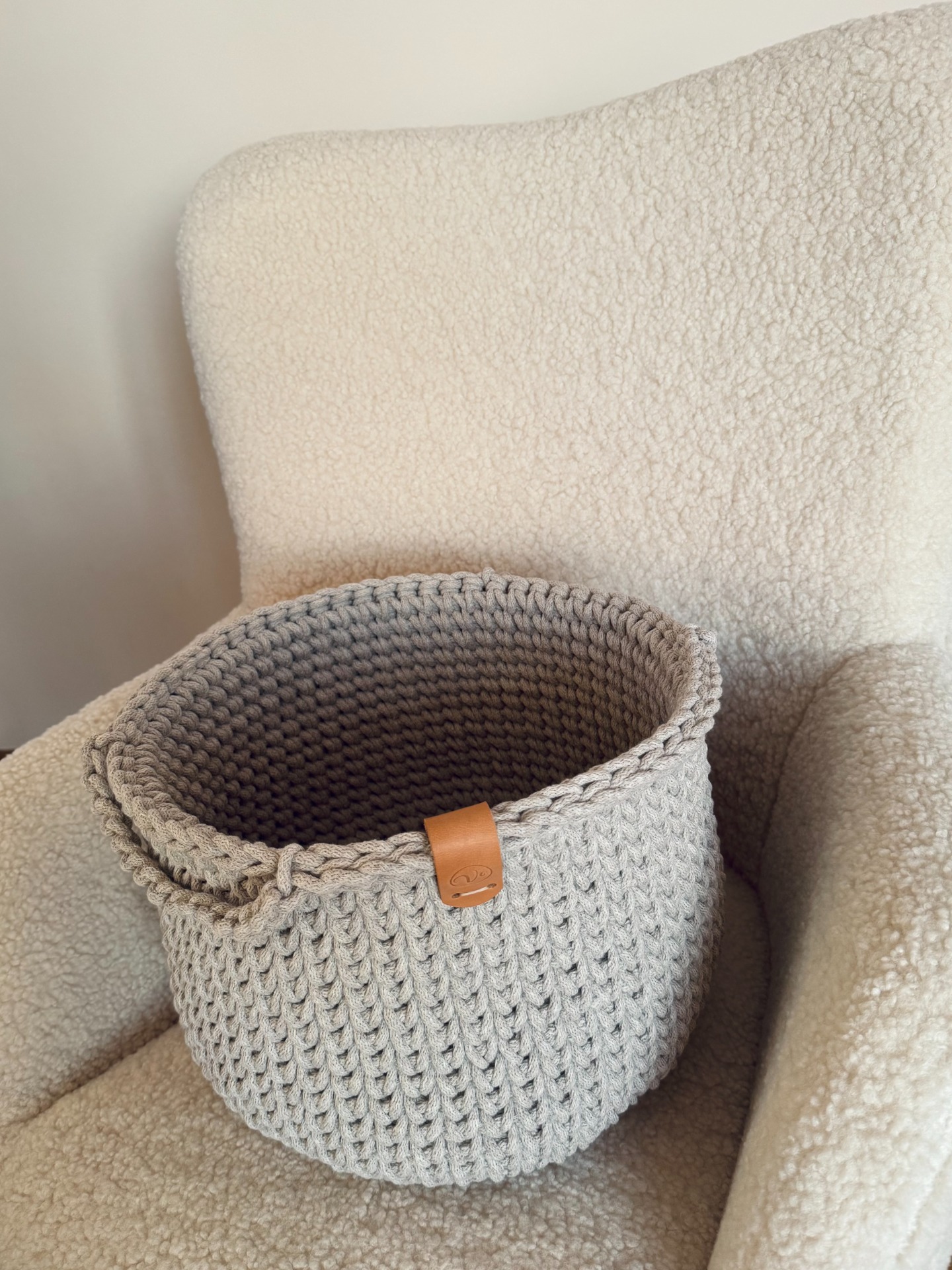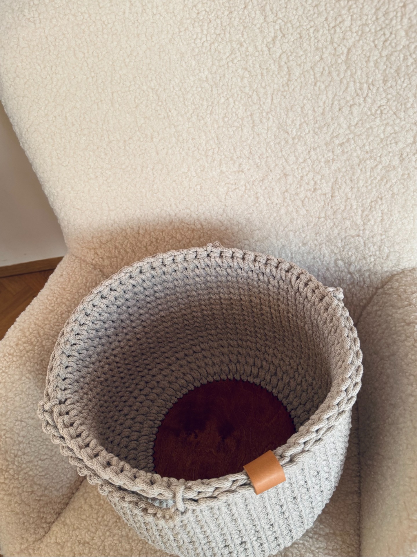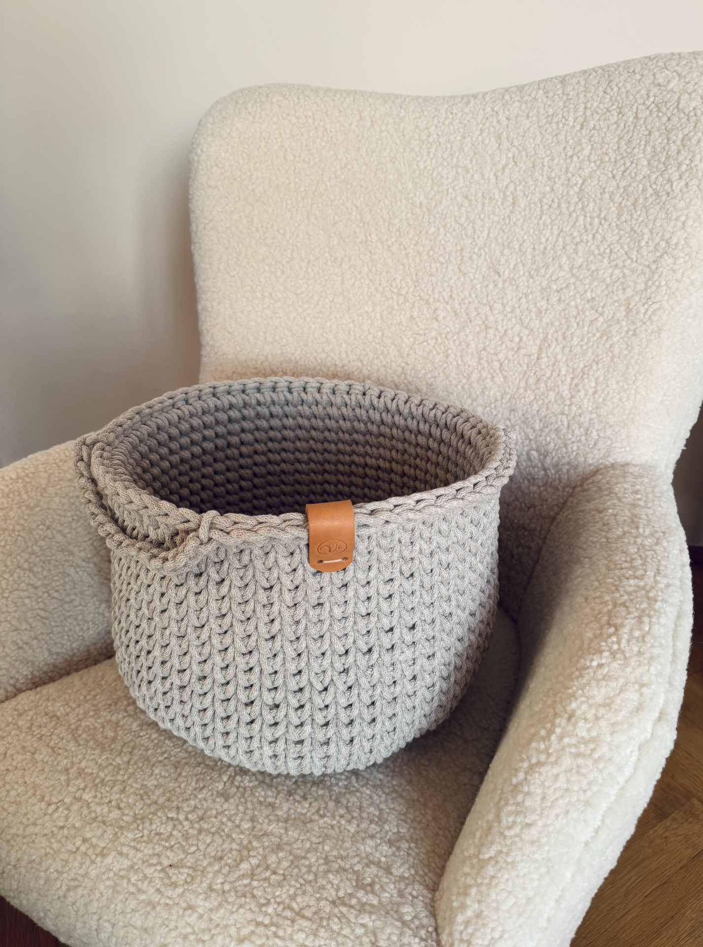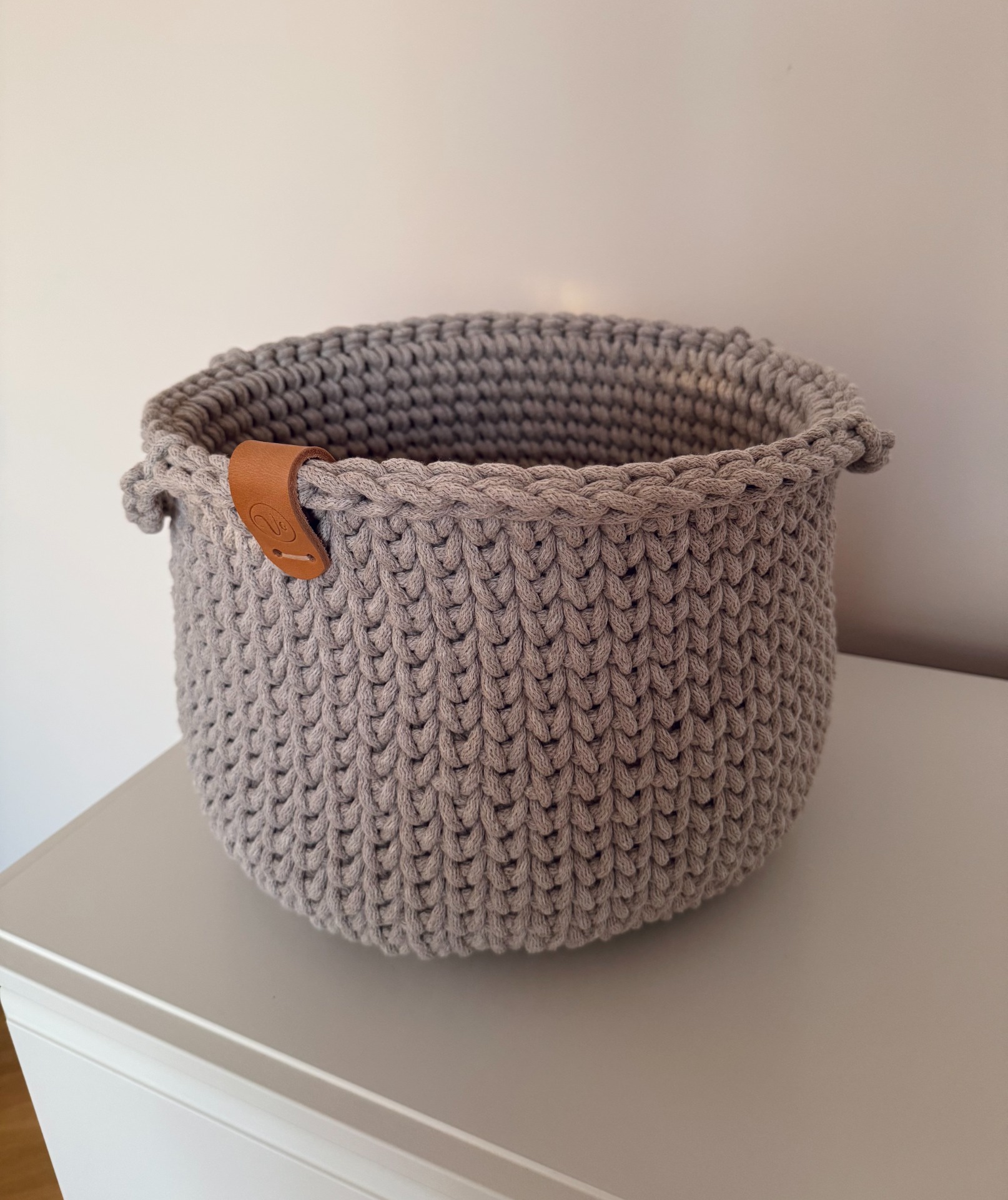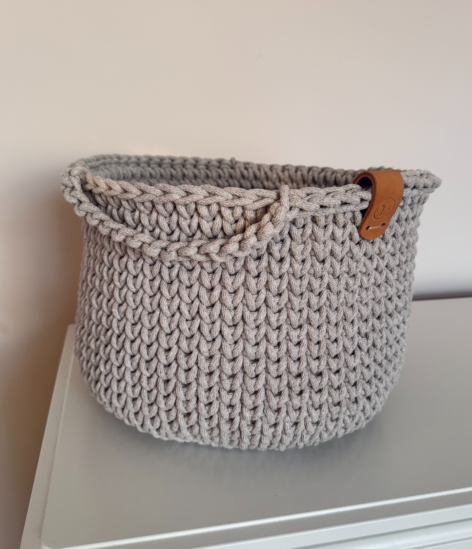 Tento ručně háčkovaný koš je dokonalou kombinací minimalistického designu, funkčnosti a kvalitního zpracování.
